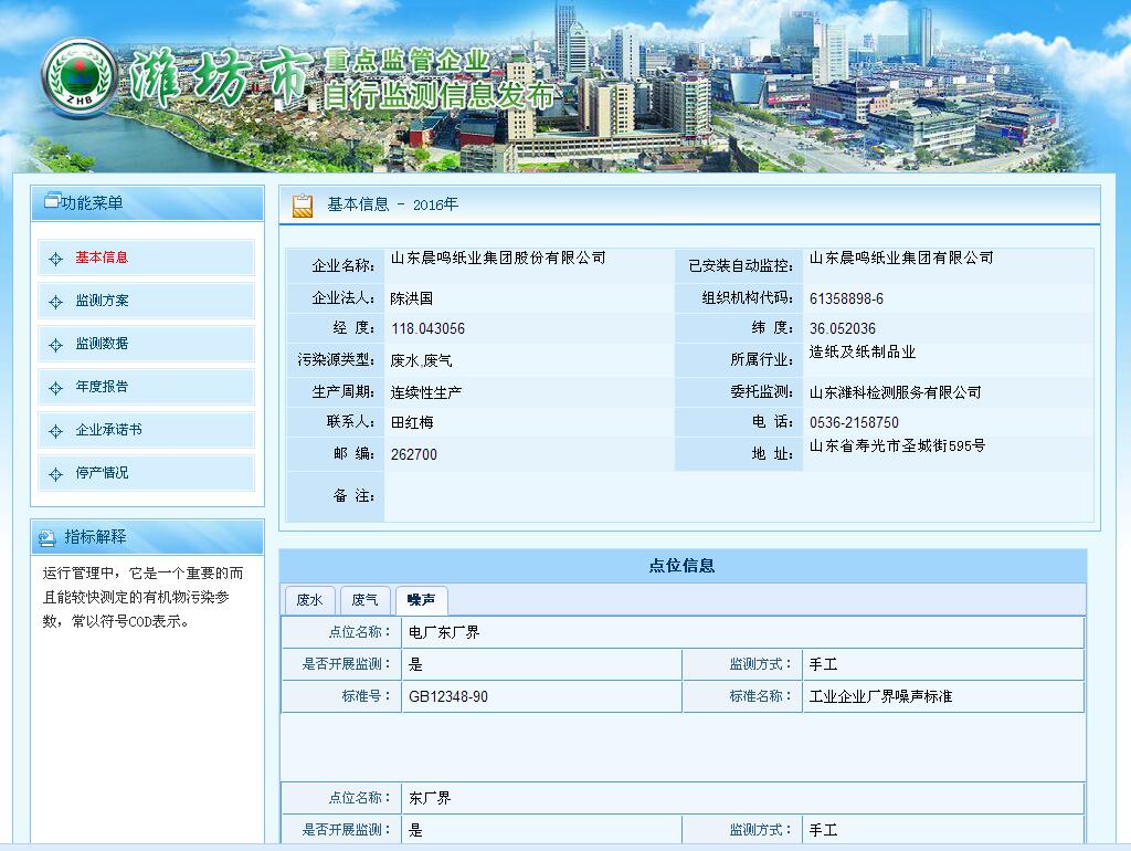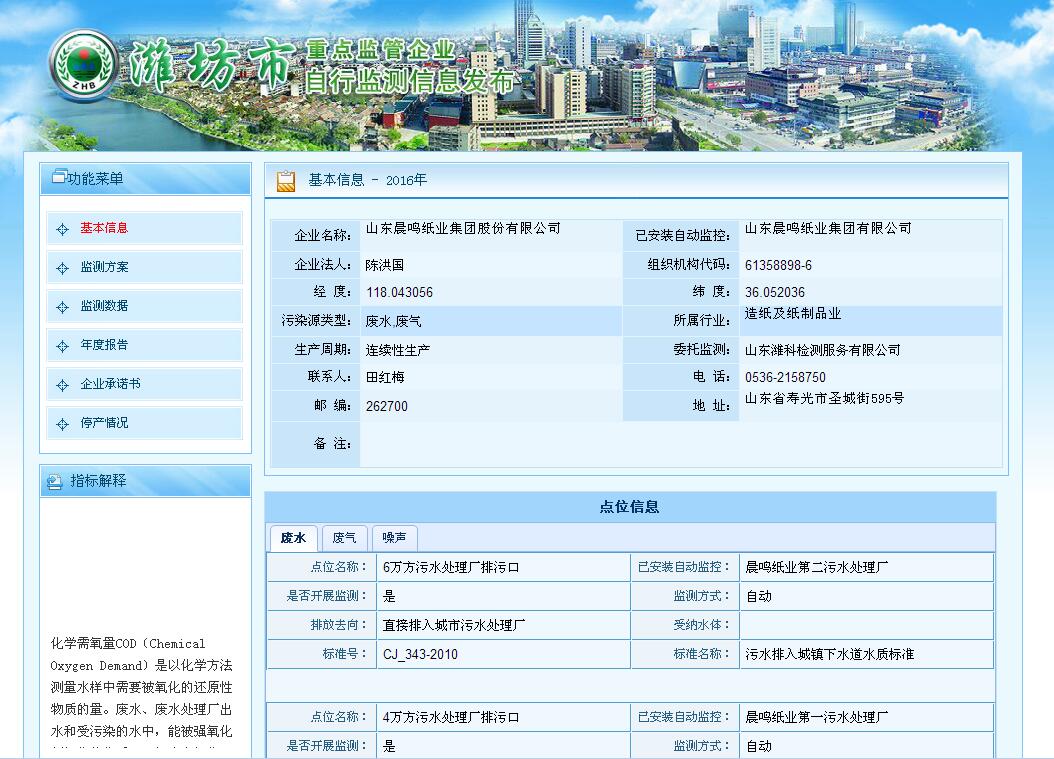 山東晨鳴紙業(yè)集團廢水、廢氣自測公示161019